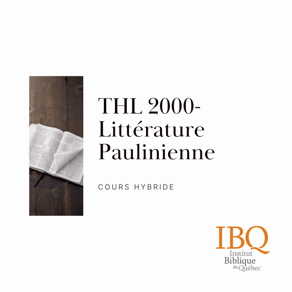 TLH-2000 Littérature Paulinienne Professeure : Si Alice Heu Offert en partenariat avec l’Université Laval, ce cours analysera les bases de la pensée de Paul à travers ses lettres. Vous plongerez dans l’univers du premier siècle pour découvrir la personne de Paul, ses idées, les circonstances de rédaction et les thèmes